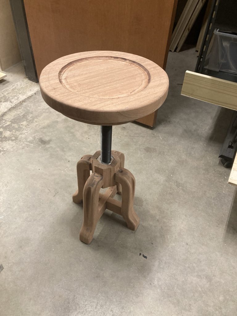 My wife’s into pottery and was badly in need of a new stool. So the brief was clear: a gift, heirloom build, adjustable height, small footprint, and a wide, comfortable seat. No pressure.
