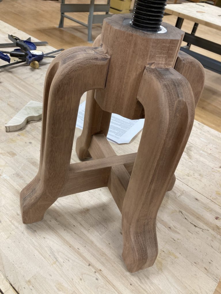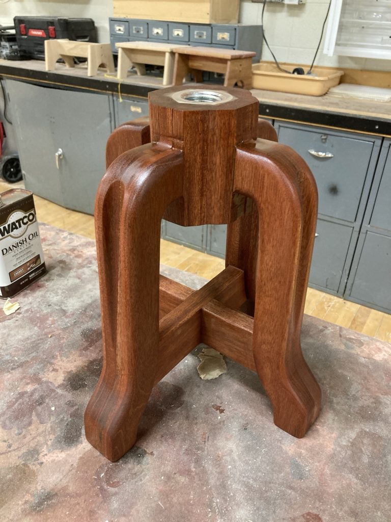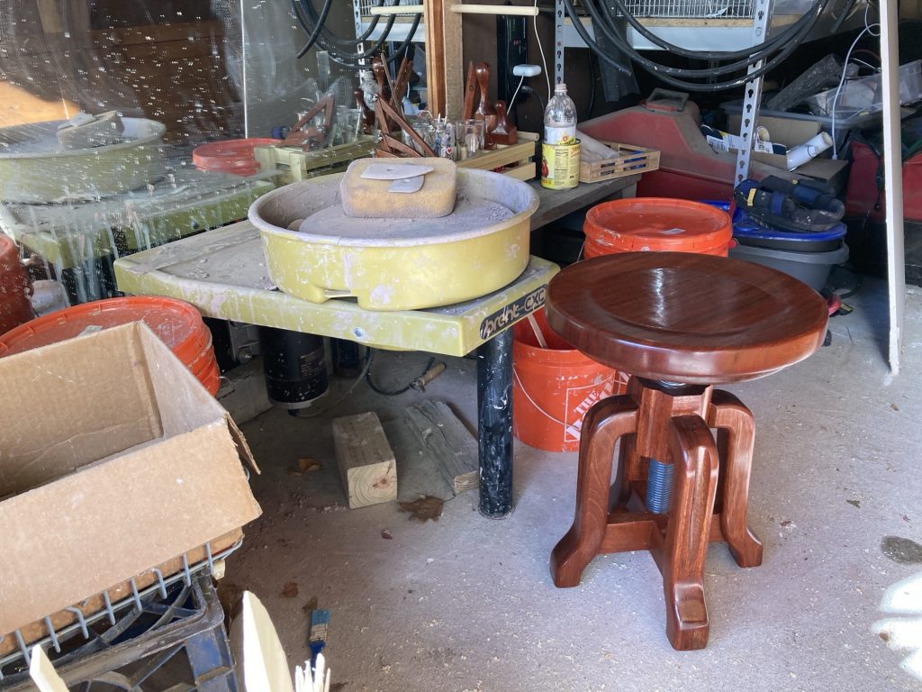 It came out pretty sweet. The action of the swivelling seat going up and down is especially nice, smooth, solid, and very satisfying. I even knocked out a few pottery tools from the offcuts: calipers, mallets, combs, shaping tools. Nothing wasted.